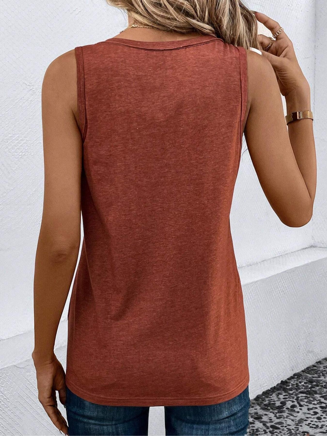 Women'S Plain Button Front Pocket Tank Top, Casual Elegant