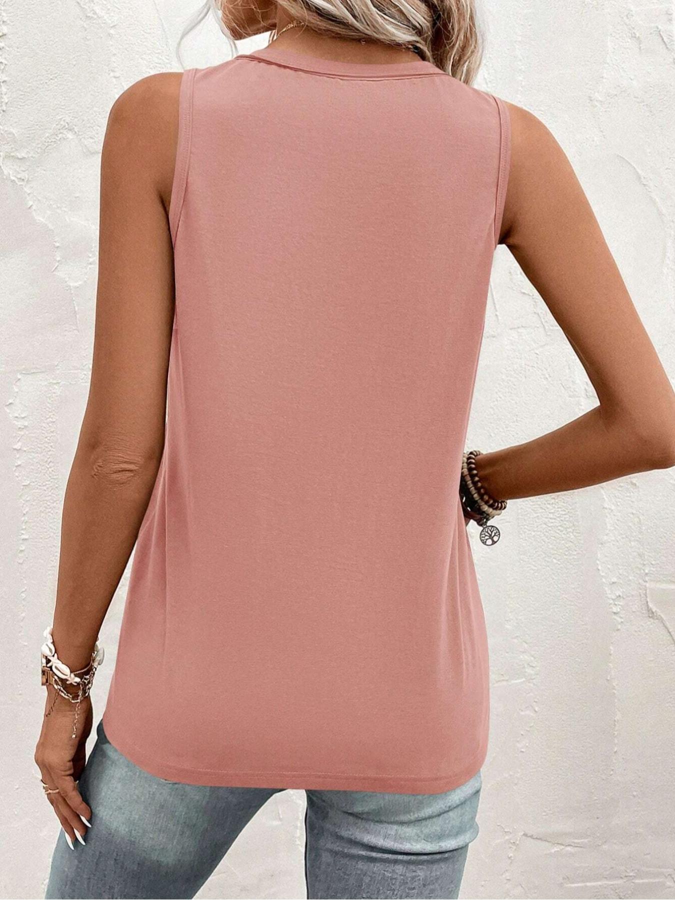 Women'S Plain Button Front Pocket Tank Top, Casual Elegant